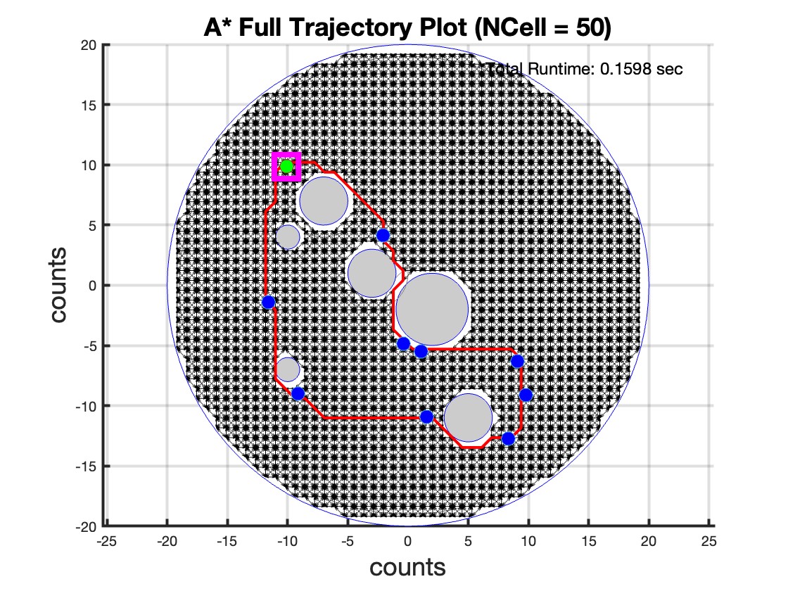 A* algorithm trajectory with grid-based discretization (0.16 seconds runtime)